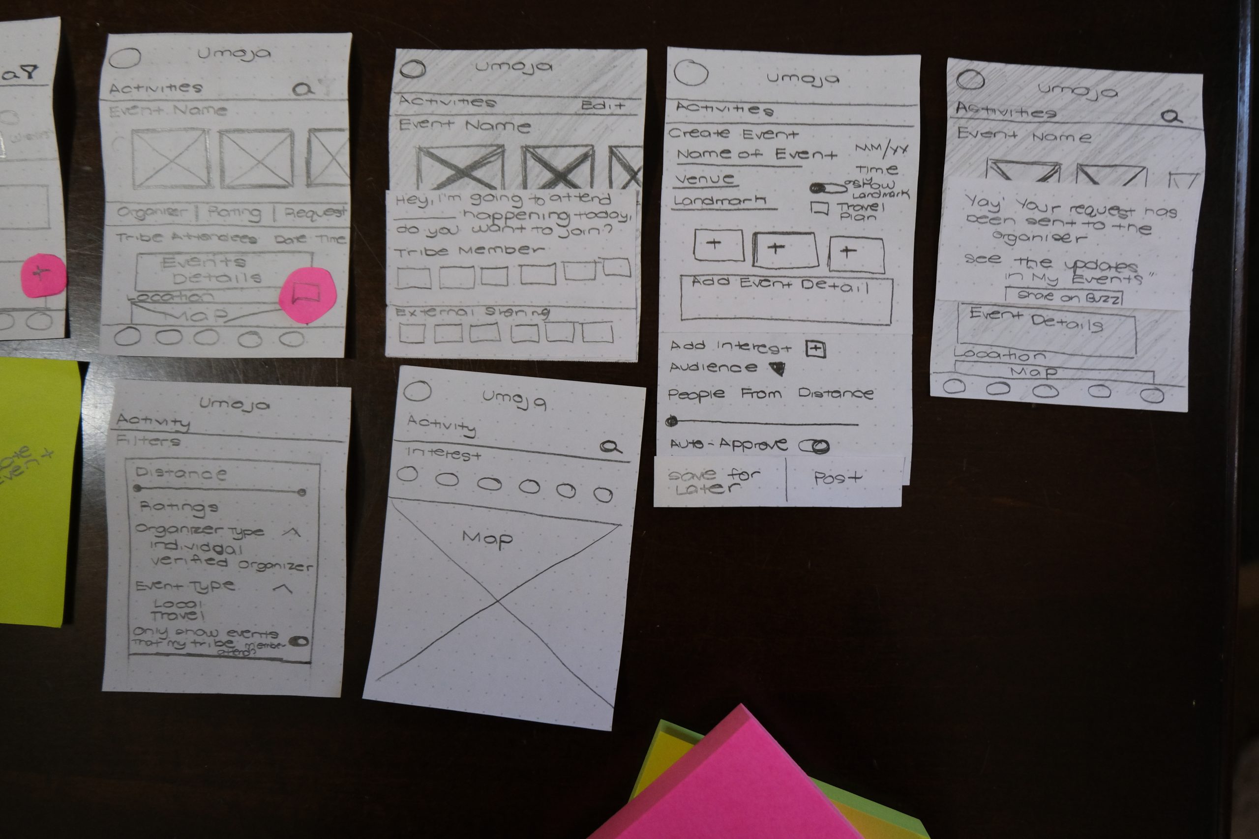 For this project, I am tasked to develop paper wireframes, low, mid and high fidelity prototypes for a startup company, Umoja, a social media app that enables you to share information with and connect with people with similar interests.